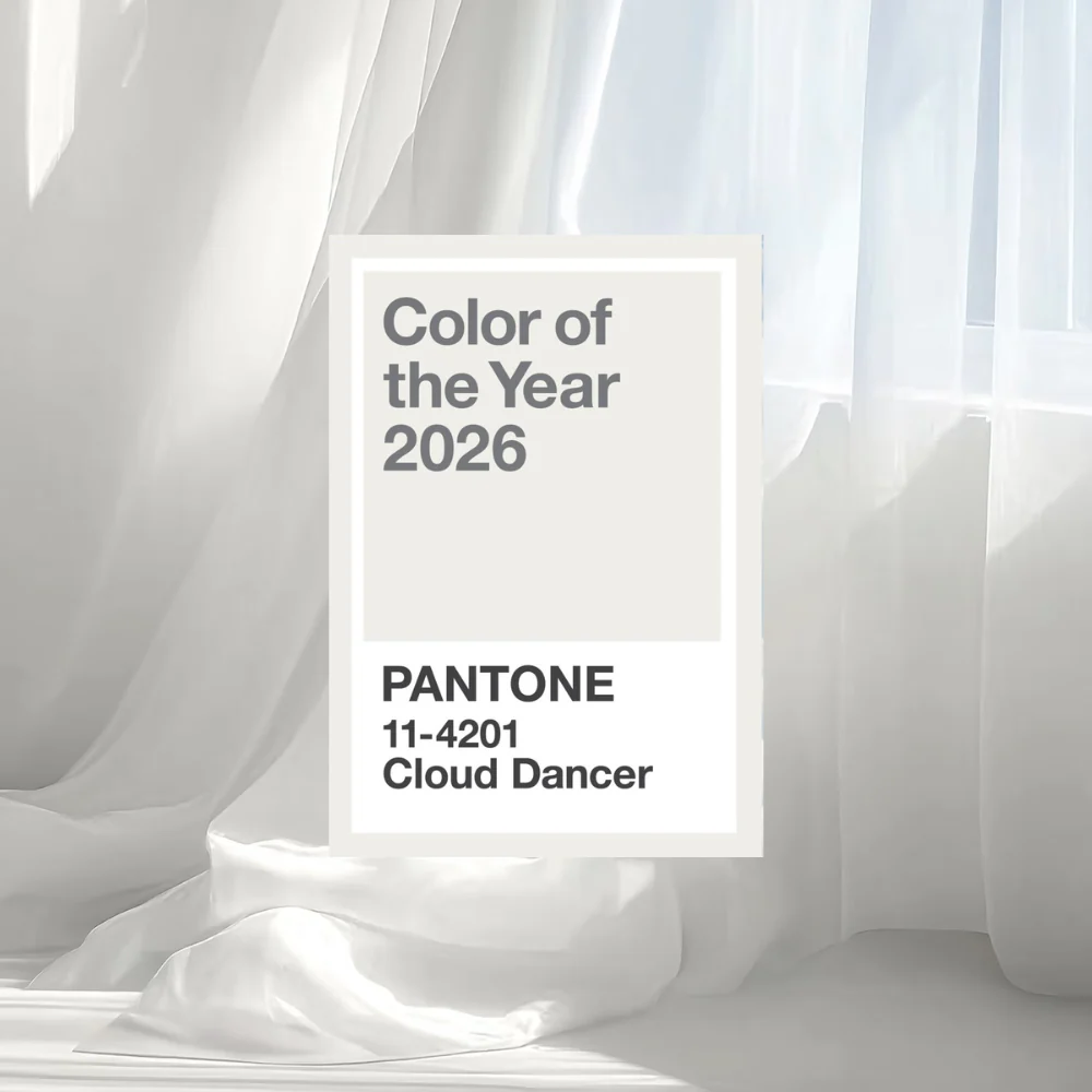 Cloud Dancer è il Pantone dell’Anno 2026: un bianco morbido, ideale per creare ambienti rilassanti, perfetto per i tessuti e gli imbottiti della vostra casa.