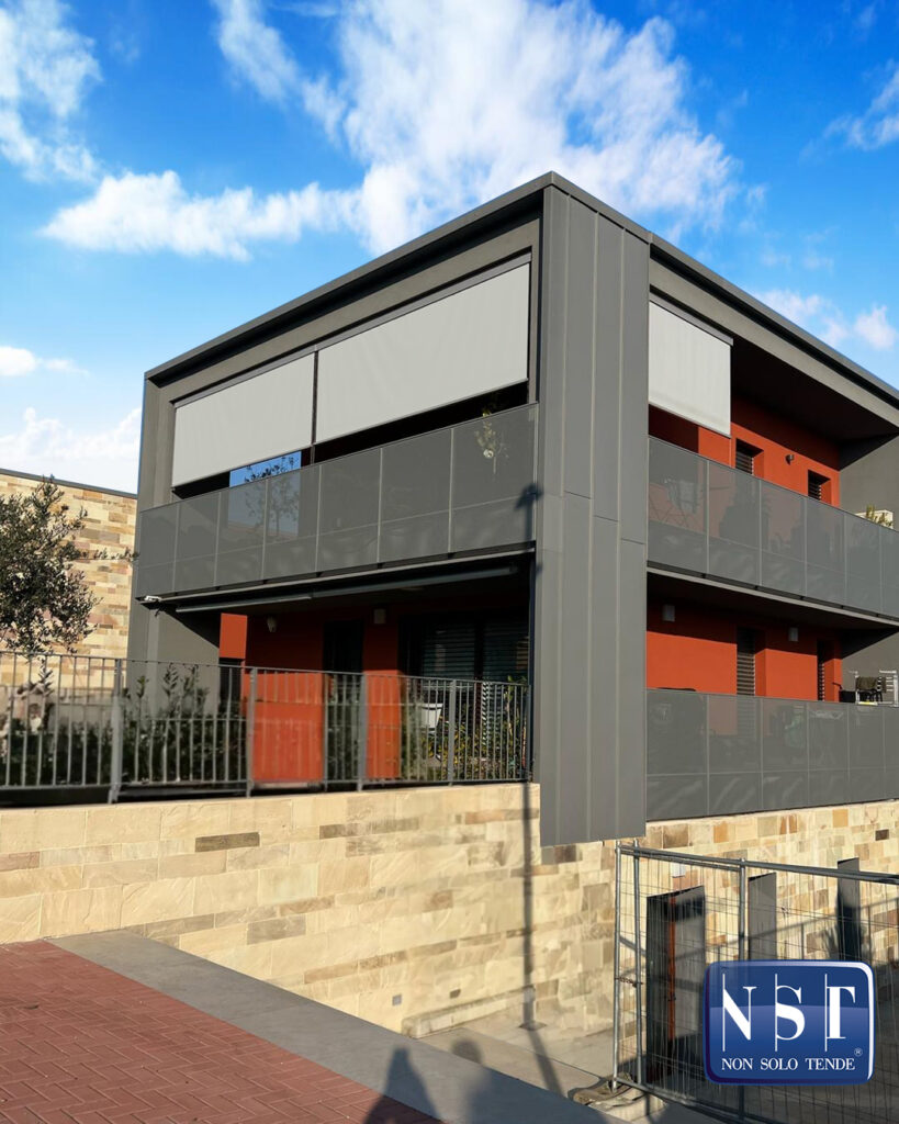 Una recente installazione a Lugana di Sirmione in cui le tende a caduta si integrano perfettamente nel contesto architettonico: questi prodotti Gibus, con la moderna chiusura Click Zip, sono adatti a qualsiasi edificio, utili per accessoriare terrazzi o balconi.